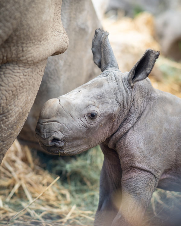 The calf was born on Sunday, April 2nd at 5:30 pm PST. We feel fortunate and honored to contribute to the growth of global rhino populations and aid in conserving this magnificent protected species.