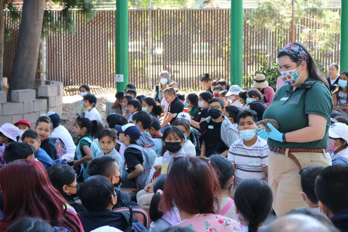 An education ambassador teaching kids about hedgehogs
