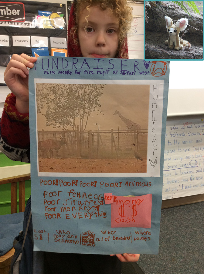 Following his time with us, Desmond returned home and began to teach his friends, family members, and classmates about the desert foxes he’d met as Safari West. His toy fennec fox (appropriately named Foxy) became the class mascot. And when the Tubbs fire broke out and forced the evacuation of Safari West, Desmond became our unofficial representative, scouring our newsfeeds and keeping his class up to date with the latest.